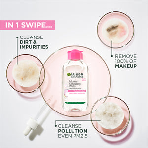 Discover our No.1 WORLDWIDE Garnier Micellar Water, the ALL-IN-ONE cleansing solution, gently removes up to 100% make-up and cleanses skin of dirt, oil, sunscreen residue, pollution & dead skin cells.