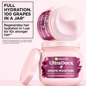 Ultra Doux Grape Moisture - Deep Regenerative Mask for Dehydrated Hair. Hydrating Grape Water + Antioxidant Grapeseed Oil -- Paraben-Free, Vegan, Cruelty-Free