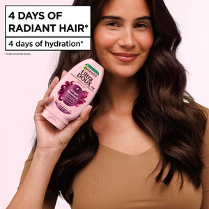 Full of water and protected by antioxidants, grapes can withstand external aggressions and maintain their radiance for a long time. Ultra Doux draws inspiration from vineyards to create a new caring range for dehydrated, dry or colored hair that are exposed to daily agressions like brushing, heat styling, or UV exposure.Complete your routine with our Grape Moisture Conditioner infused with grape water and antioxidant grape seed oil to intensively hydrate your hair fiber and regenerate its radiance.Benefits : hair is detangled, hydrated and radiant for 4 days* (*instrumental test). This bottle is made from 100% recycled plastic (excluding cap and label).