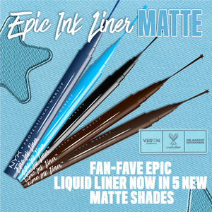 Get ready for epic precision and long-lasting impact with the NYX Epic Ink Liner. This fan-favorite waterproof liquid eyeliner delivers ultra-intense pigment in one stroke, gliding on effortlessly for crisp, saturated lines. The slender, flexible brush tip lets you create everything from delicate, barely-there lines to bold, dramatic cat eyes. Available in 7 show-stopping shades, including matte, metallic, and glitter finishes, this vegan formula is perfect for every style and mood.